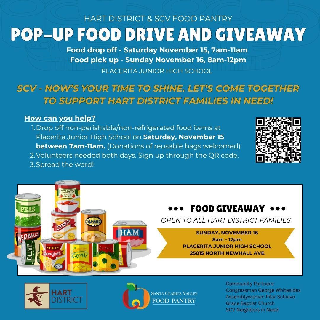 refrigerated food items at Placerita Junior High on Saturday, November 15 between 7 am-11 am.