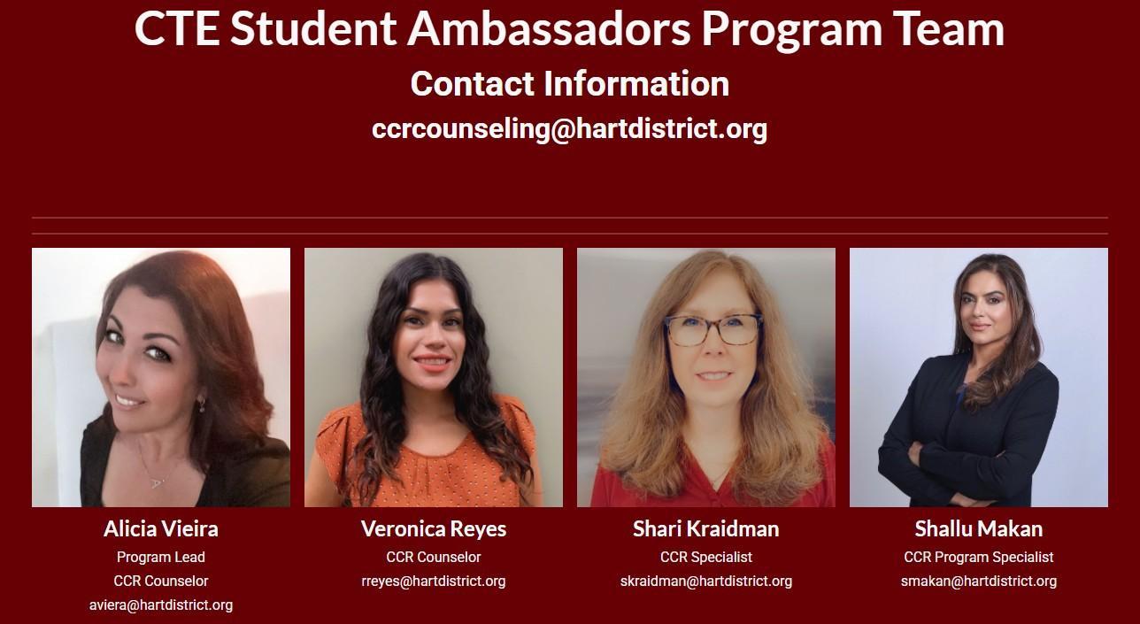 Hart District's Career & College Readiness (CCR) Department is seeking outstanding Career Technical Education (CTE) Student Ambassadors who are ready to engage in meaningful leadership opportunities that promote character development, creativity, collaboration, communication, and critical thinking. Ambassadors represent their school and district and work collaborative with other CTE students to Become the Voice of CTE! They will attend meetings and events, and advocate for CTE.